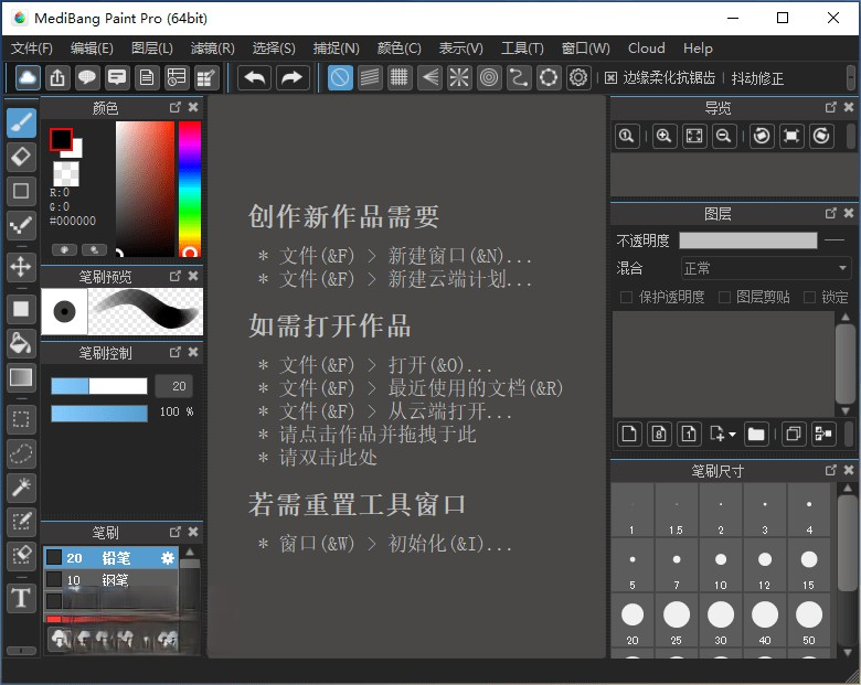 Medibang Paint Pro 是一款专业的插画漫画绘制软件,支持 Windows、Mac、Android 系统跨平台的的专业的插画漫画制作软件,你只需要动动手指就可画出如同照片般逼真的图像,内置有丰富的笔刷,素材,漫画,字体等功能方便作者进行创作,比较适用于B站二次元动漫的创作等等,搭载多样笔刷表现原稿质感的G笔尖・圆笔尖,以及可混色水彩等18种笔刷,轻松画出想表现的各种线条,更可依据个人喜好调整!还可以使用图片自制笔刷哦!一般的绘图软件运行时占用内存极大,时常伴有开启或处理缓慢的现象。然而,带有漫画及插图功能的MediBangPaint却轻巧轻便!可画出流畅的线条,同时,软件本身的文件大小也十分轻巧,所以不会占用过多电脑内存。轻松画出平行线,十字,集中线,同心圆!使用消失点辅助功能,即可准确掌握建筑物的远近透视!