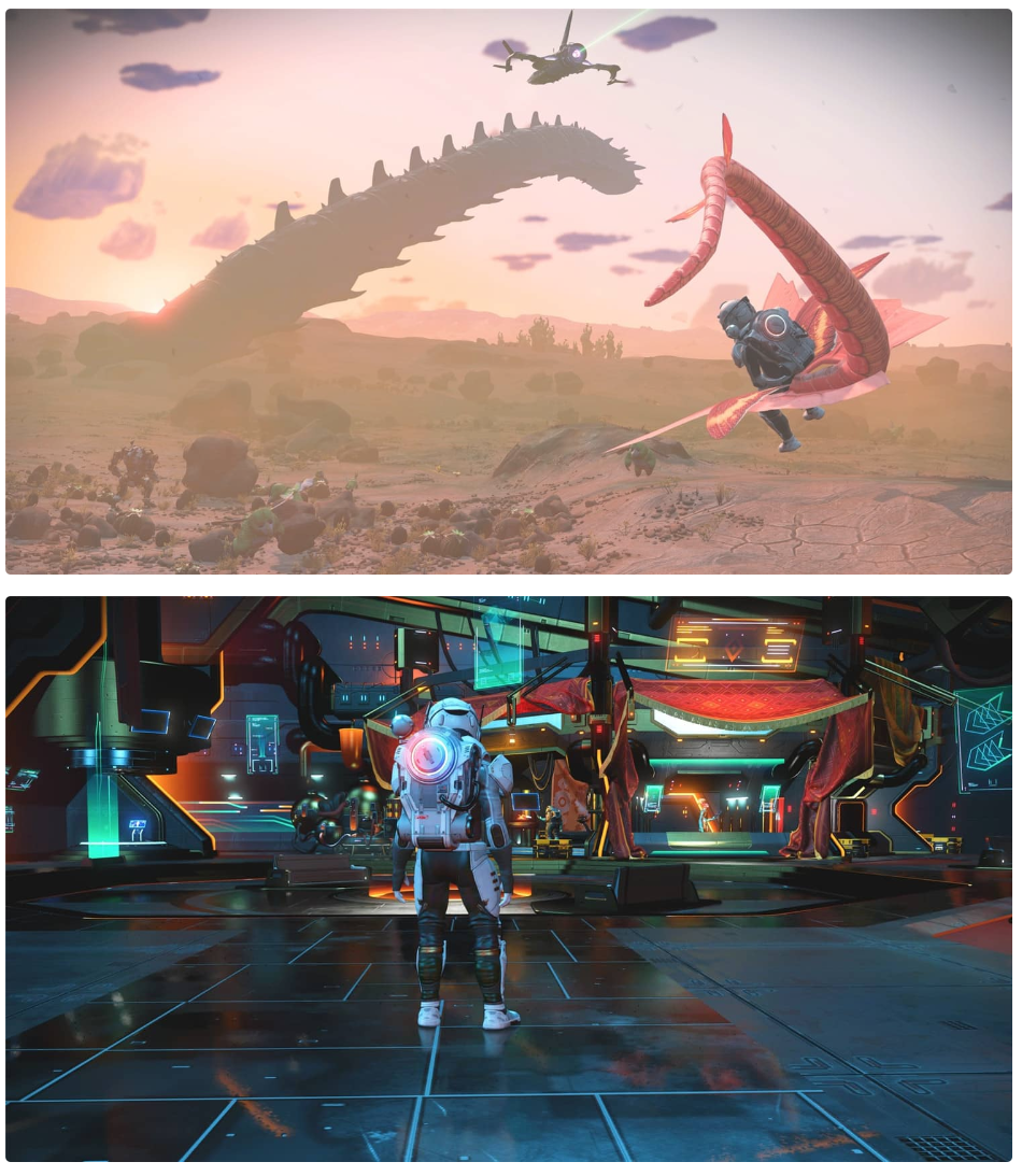 《无人深空》注重自由度和开放性,玩家可以选择自己的探险方向,成为一名勇敢的探险家、独立的商人、军事力量或科技研究者。游戏还融入了科幻元素和神秘的故事线索,让玩家沉浸于宇宙的奇妙之中。
