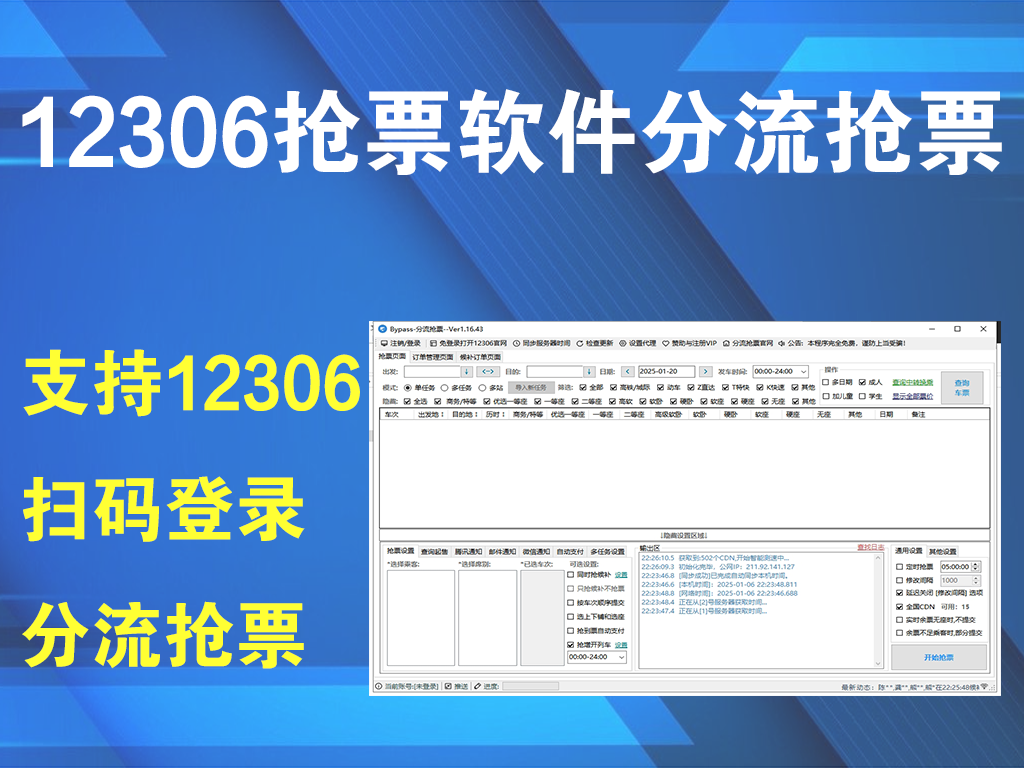 是一款完全免费的抢票软件,全程自动抢票、自动抢候补、自动识别验证码、多线程秒单、稳定捡漏。支持多天、多车次、多席别、多乘客等功能,更多功能敬请期待。