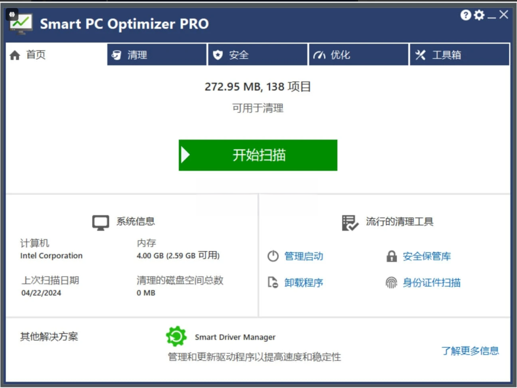 3. 加速启动:Smart PC Optimizer可以管理启动项,帮助用户加快系统启动速度并减少启动时间。