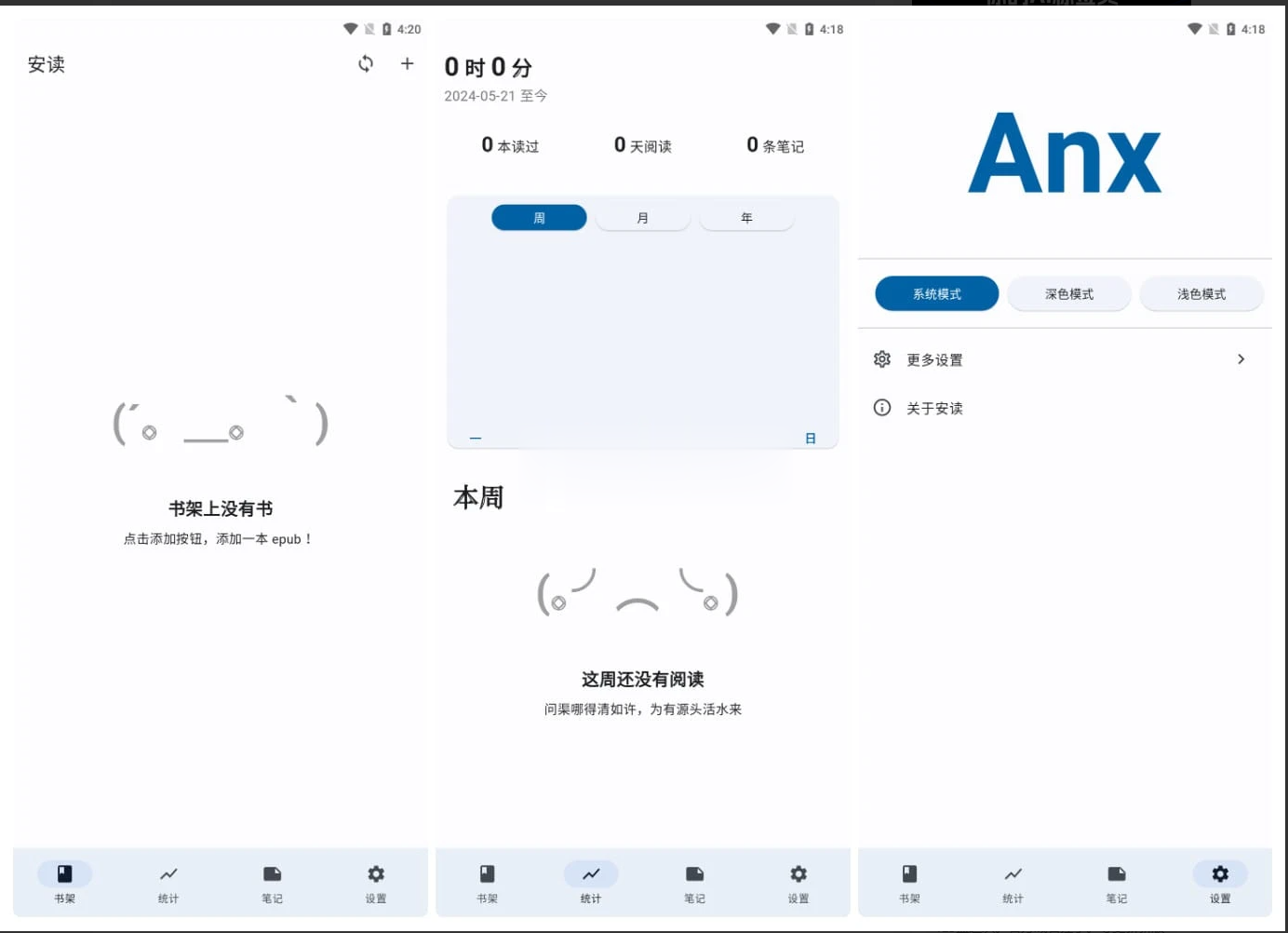 安读是一款专注于阅读的应用,无在线推广内容,可同步阅读进度、笔记和书籍文件,支持自定义阅读配色,适配手机、平板界面。软件界面简洁,功能实用,可帮助用户更专注于阅读,提高阅读效率。